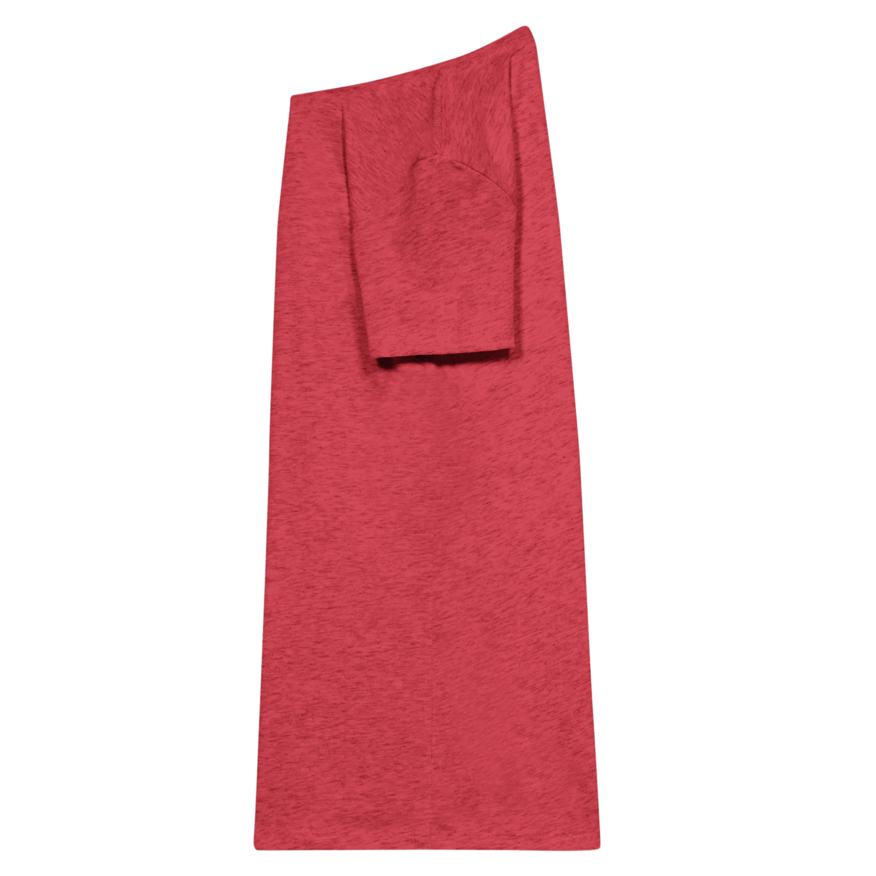 Close-up of a red t-shirt with a white background