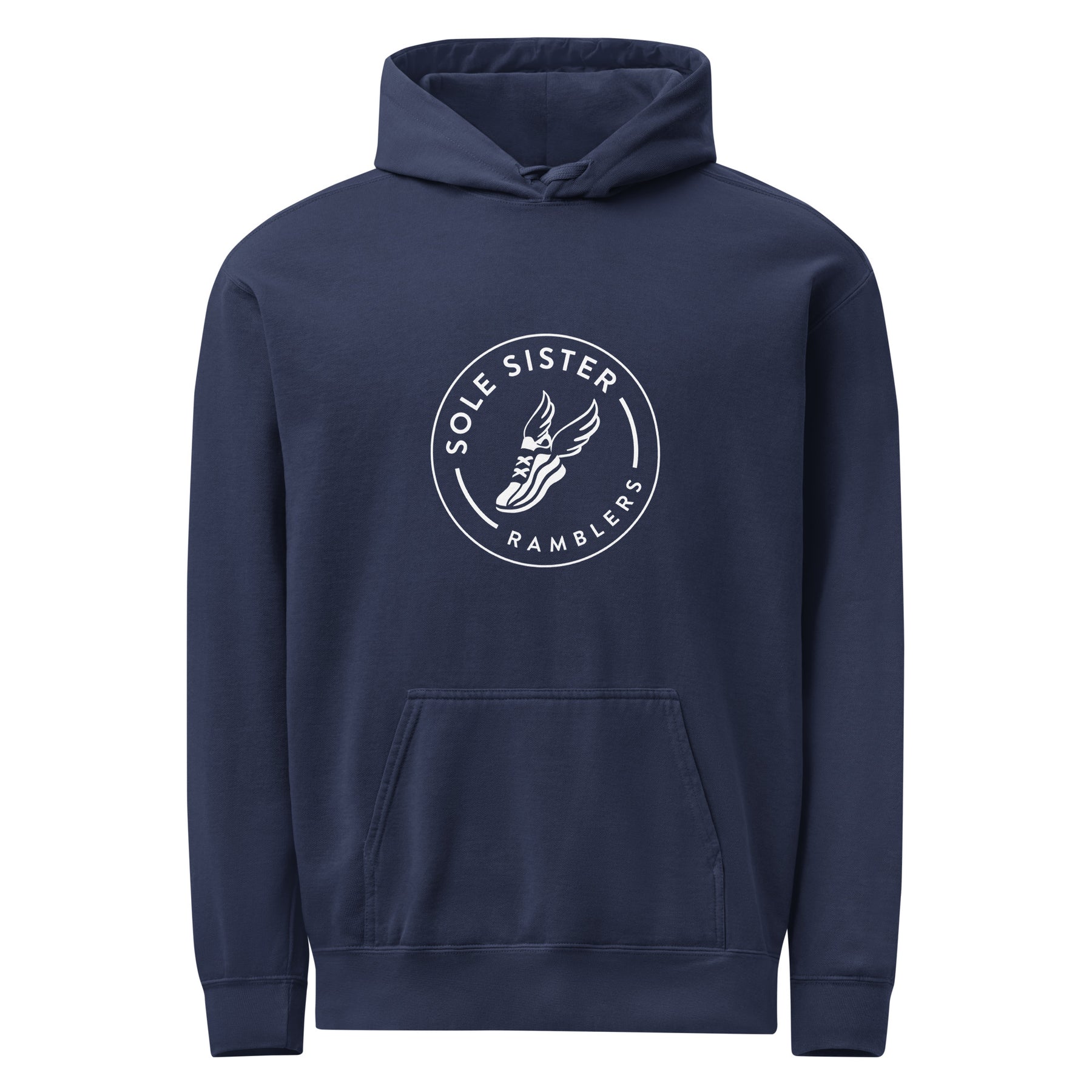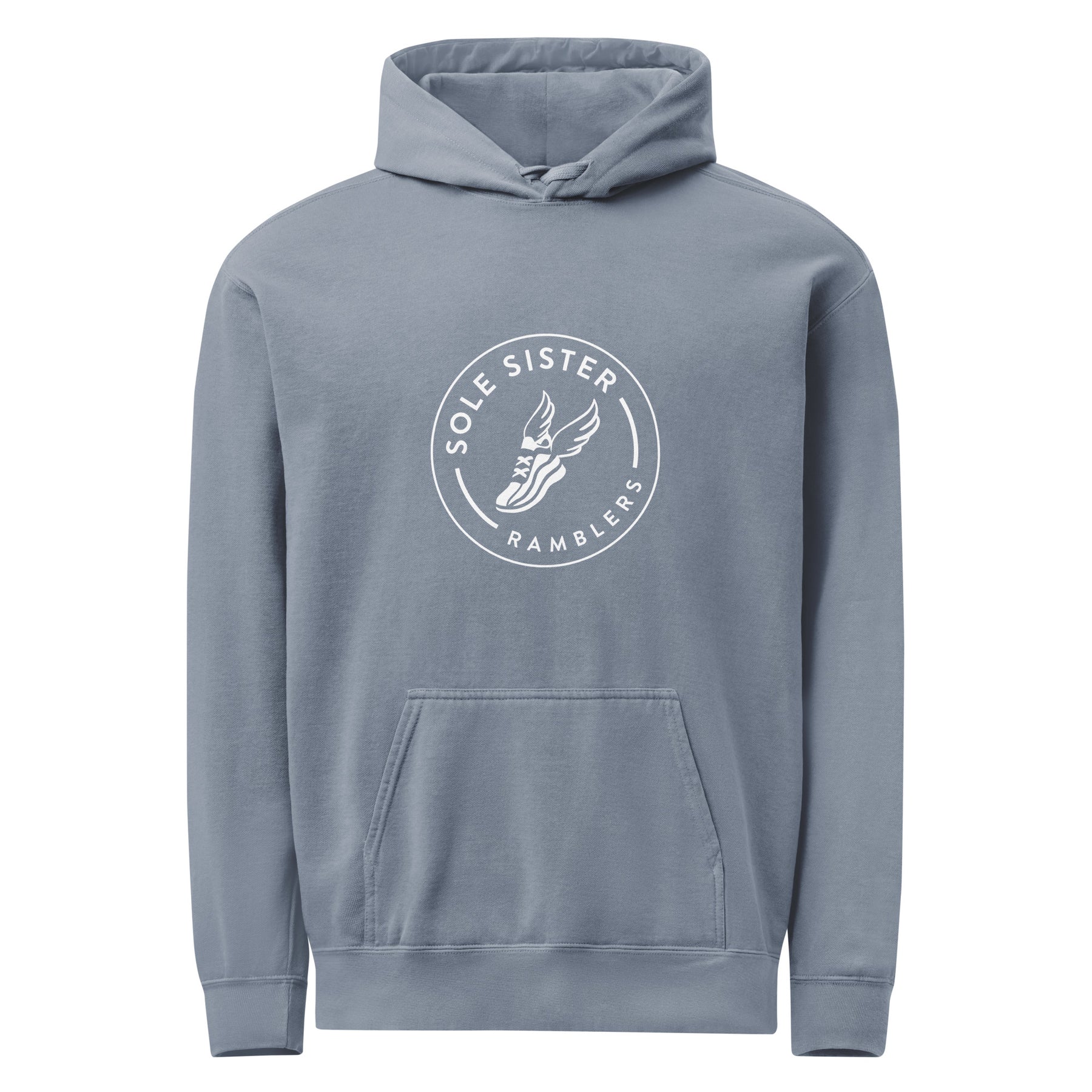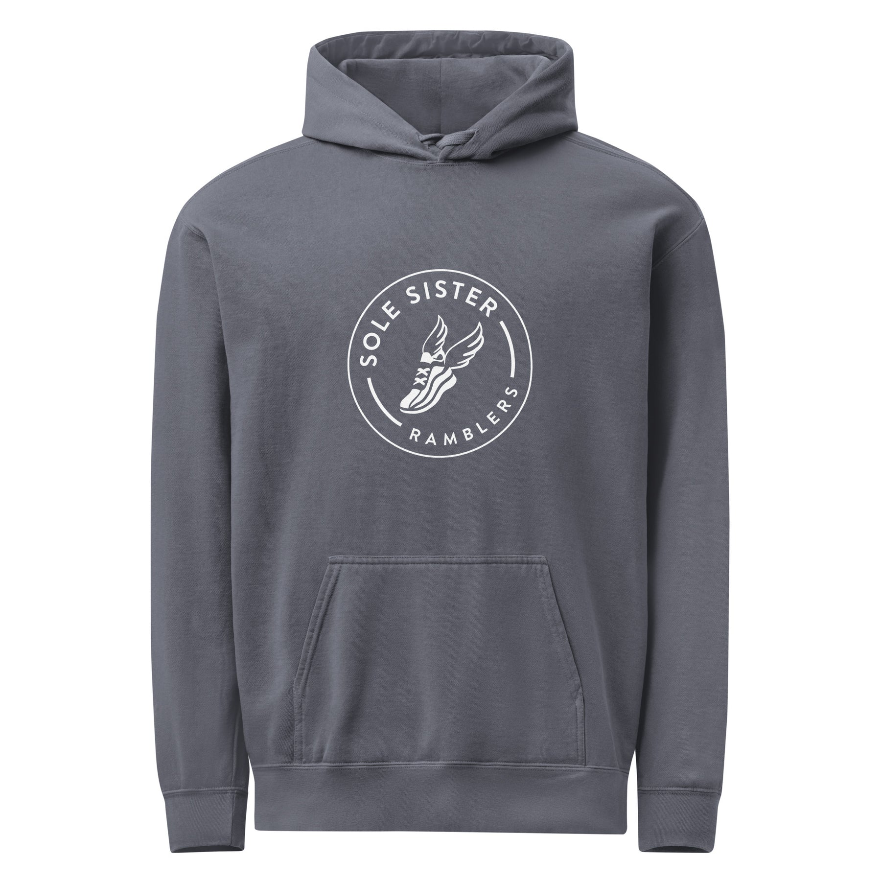 Slate grey Hoodie round white Sole Sister Ramblers logo