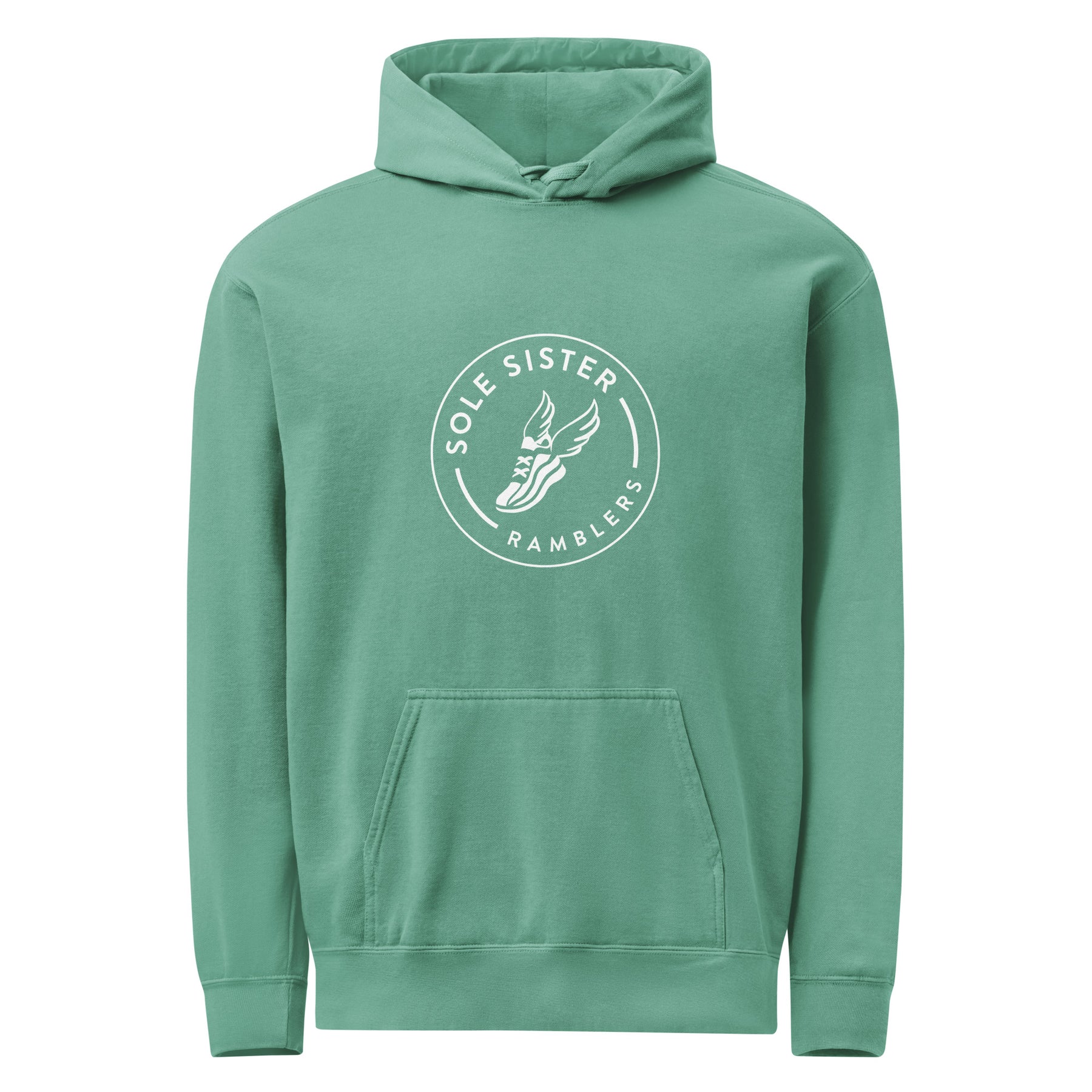 Sage green Hoodie round white Sole Sister Ramblers logo